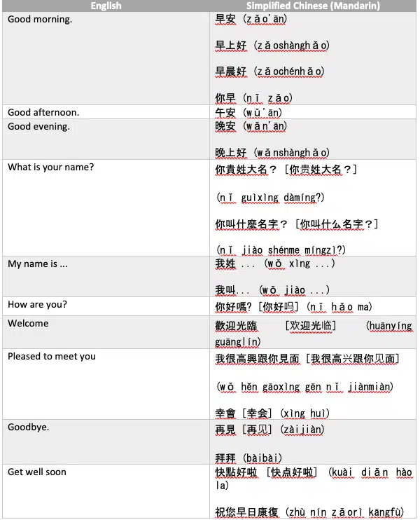 Since 1985, American Language Services (AML-Global) has provided effective translation, interpretation, and transcription services in over 200 languages (including ASL & CART services). AML-Global is one of the largest language service providers in the United States. We have earned an excellent reputation by delivering cost-effective, timely and great quality work with fast turnaround times. We are 9001 & 13485 ISO certified, which is a testament to our uncompromising processes. Below is a sample of commonly translated phrases in the Simplified Chinese (Mandarin) language.